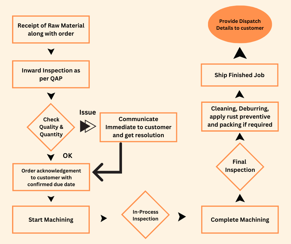 At Shivam Engineering, our production process is meticulously designed to ensure quality, precision, and timely delivery at every stage. From the initial order to the final dispatch, we follow a systematic approach that incorporates advanced technology and rigorous quality checks. This ensures we meet the unique requirements of our clients across industries like automotive, aerospace, and industrial machinery.